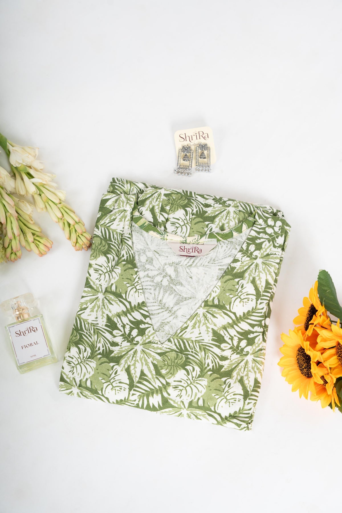 Step into ease and elegance with Leaflet Charm — a flowy green dress adorned with soft tropical leaf prints. Designed for comfort and charm, it's perfect for breezy days and relaxed moods.