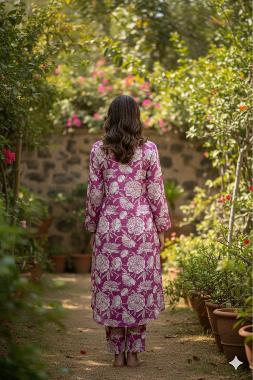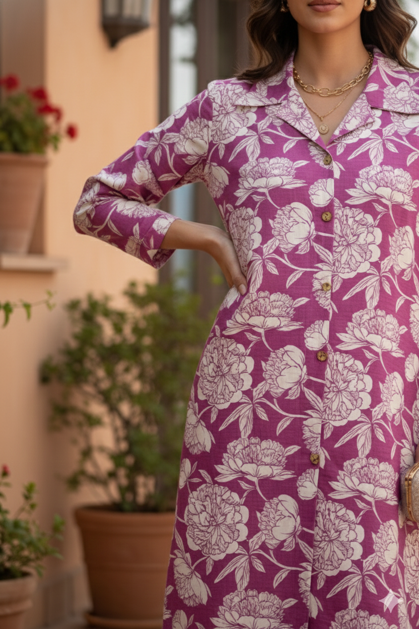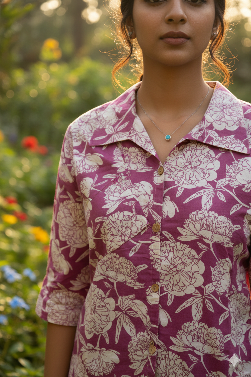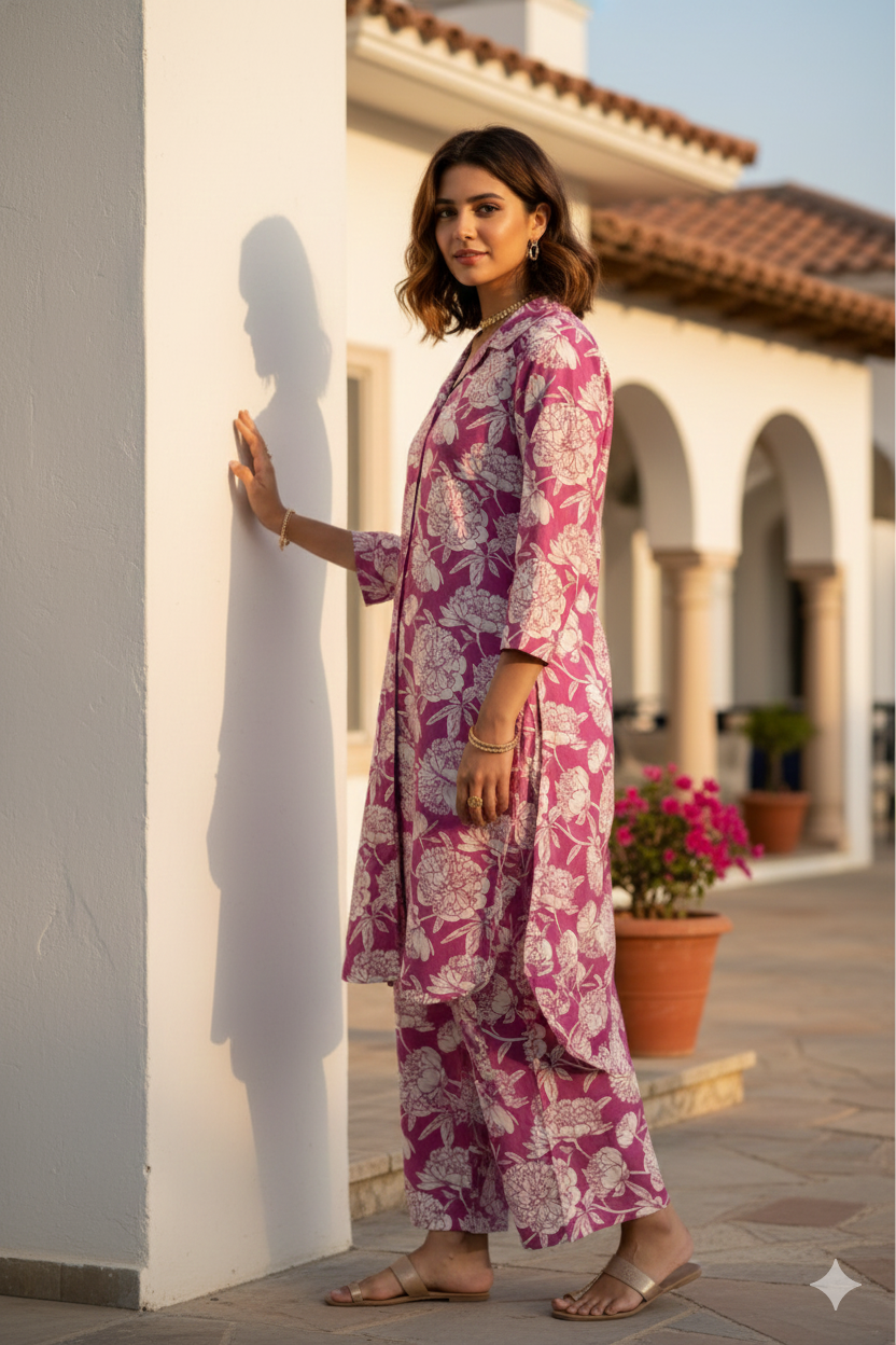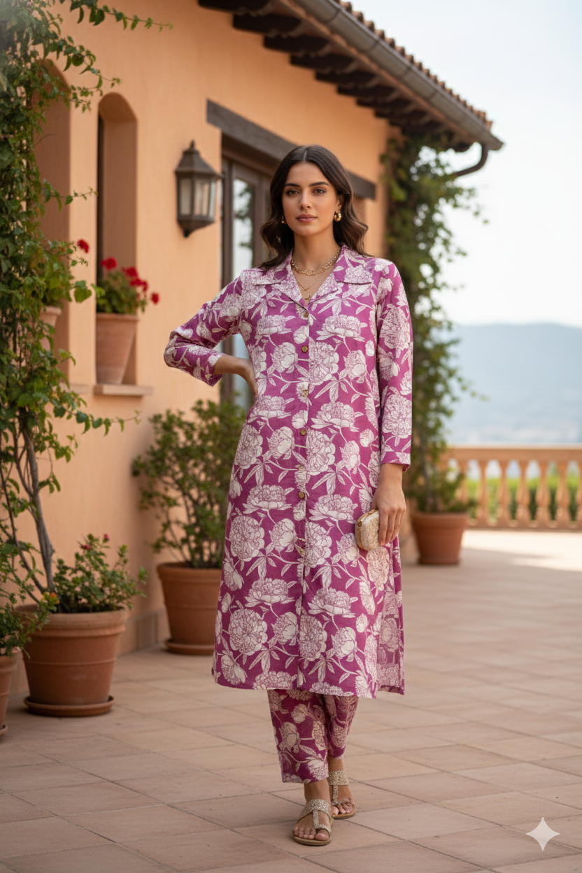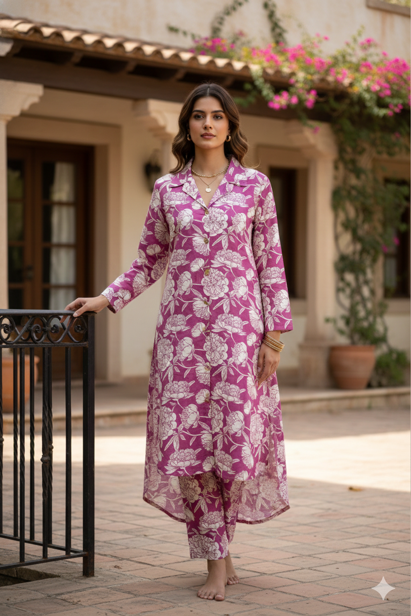 Mulberry Bloom Shirt Collar Comfort Co-ord sets